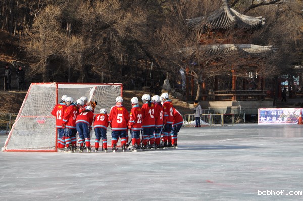 赛制,比赛时,双方各11人出场。其中守门员1人,运动员脚着冰刀鞋,身穿保护性运动服,手握球拍,竞相将球射入对方球门。每射中一球得1分,以结束时得分多者为胜队。全场比赛90分钟,分上下两半场,中间休息10分钟,比赛中可随时换人。