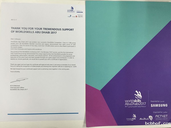 伟德平台登录入口官网在2017年第44届世界技能大赛期间的大力支持和贡献,为大赛的圆满成功发挥了重要作用,收到组委会和行业的认可与肯定。近日,大赛组委会正式授予伟德平台登录入口官网赞助世赛的荣誉证书以及感谢信,并期待后续能与伟德平台登录入口官网保持密切合作,鼓励更多社会人士关注世界技能大赛,关注技能精神,提高技能人才的培养。