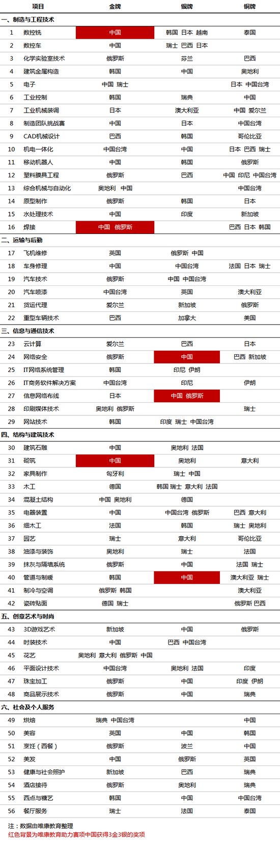 助力的第45届世界技能大赛14个赛项,选手夺得3金3银的好成绩(注:信息网络布线、数控铣、网络安全、管道与制暖、焊接、砌砖赛项)。