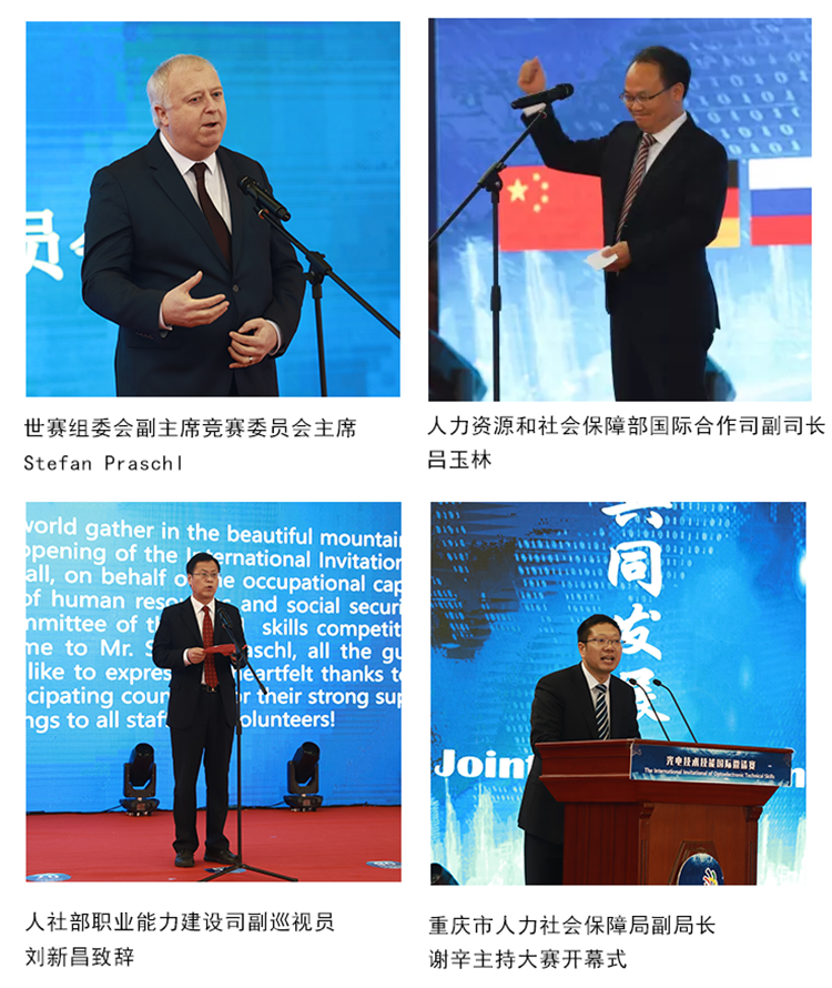 12月14日,“光电技术技能国际邀请赛”在重庆电子工程职业学院举行开幕式。开幕式邀请的与会嘉宾有:世赛组委会副主席、竞赛委员会主席Stefan Praschl、世界技能组织行政代表、人力资源和社会保障部国际合作司副司长吕玉林、人力资源和社会保障部职业能力建设司副巡视员刘新昌、重庆市人力社保局副局长谢辛、重庆电子工程职业学院党委书记孙卫平、世界技能组织“全球行业合作”伙伴成员-伟德客服总经理王艳凤女士等。