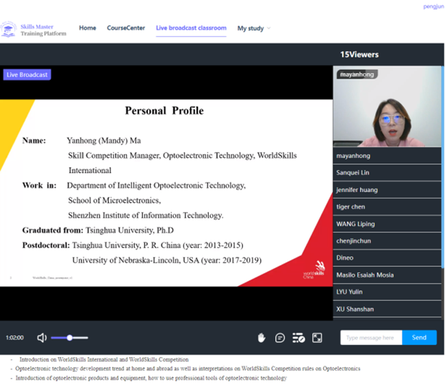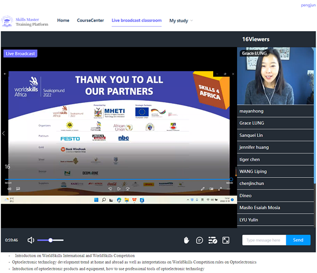 为巩固2021年“上海世赛携手非洲”活动成果,进一步深化与非洲国家在技工教育、竞赛组织和选手培训等领域的交流合作,人力资源社会保障部国际交流中心与世界技能组织合作,于9月19-20日通过技能大师在线培训平台成功举办光电技术培训课程,共有来自6个非洲国家的20余名学员参加。活动得到伟德客服、大能手教育科技有限公司等单位的大力支持。