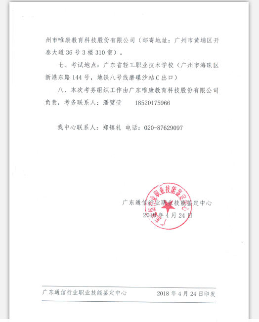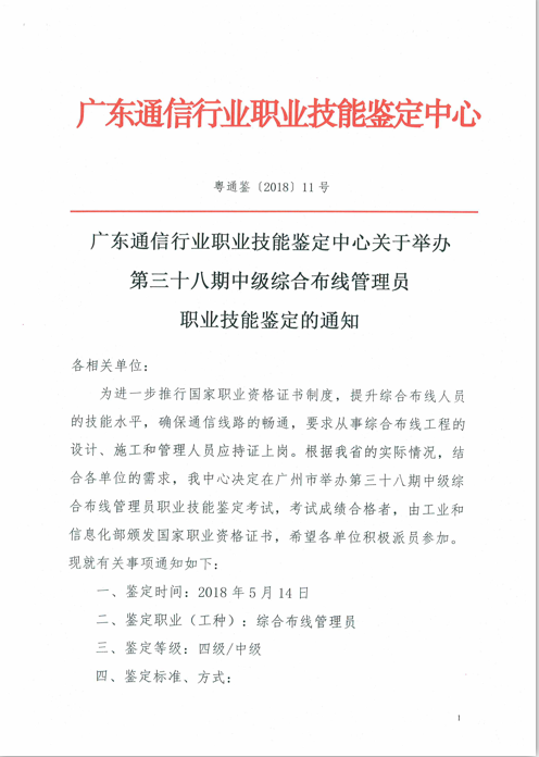 鉴定单位:广东通信行业职业技能鉴定中心